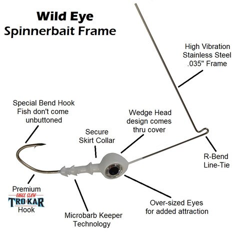 The Wild-Eye combines all the best features you could ask for in a spinnerbait. The bait is named after its oversized eyes, which helps predatory fish home in on your hook. Check out the top end features: