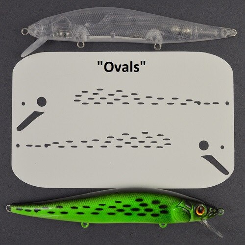 These stencils are designed to produce consistent, top quality patterns on your jerkbait blanks using an airbrush. These re-usable stencils are cut from 10mil Polypropylene material, making them durable and flexible. The “Self-Alignment System” makes them extremely easy to use! We have tested and approved them for LPO jerkbait blank models, but these stencils can work for you on a variety of similar body styles. Designed to work with varying lengths, yet still produce precise patterns. Take the guesswork out of finishing your lures and get a professional look every time! We have a great pattern selection to choose from. Overall stencil measures 3 ½” x 5 ¾”.