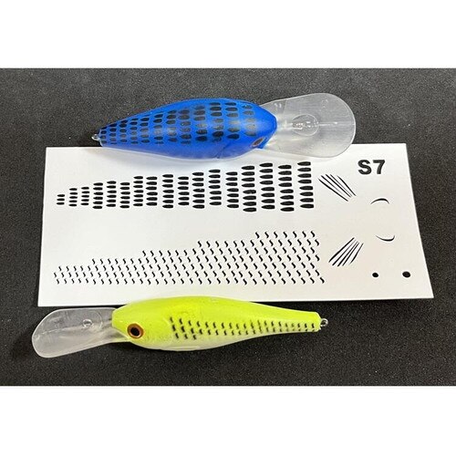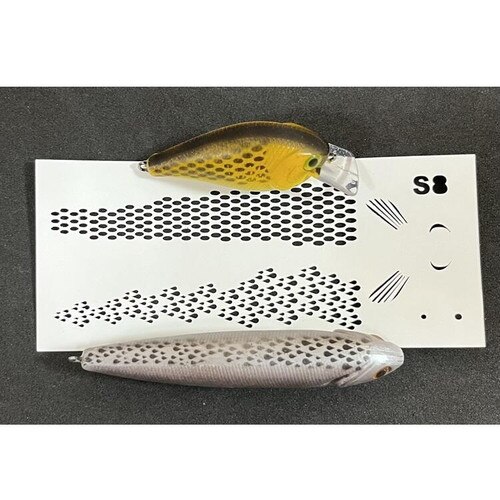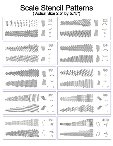 We have added a selection of popular Scale Pattern Stencils that are used on a regular basis when painting a scale print on crankbaits, jerkbaits and other lures. Great for beginners and pros alike. These re-usable stencils are cut from 10mil Polypropylene material, making them durable and flexible. Each individual stencil measures 5 3/4” x 2 ½”. They can be used many times as long as they are kept relatively clean. 10 stencil pattern options.