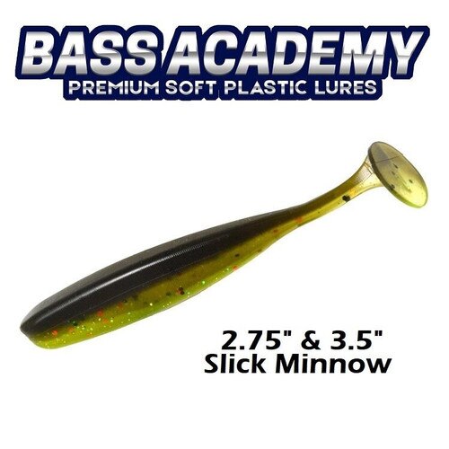 Our new Bass Academy Slick Minnows come in 2 popular sizes and a range of enticing color patterns. These lures feature small paddle tails that wiggle and shake providing the vibration and swimming action fish can't ignore. Soft, supple plastic adds to the irresistible action. Sold 8 baits per pack.