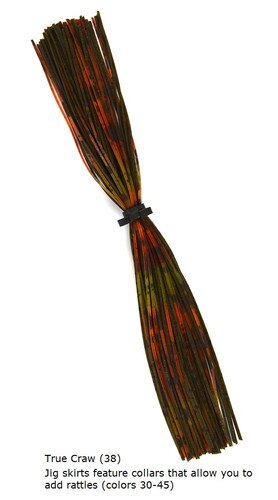 These are the finest jig skirts I have found. The color selection is outstanding. I really like the Black/Blue Glimmer and the Bruiser for stained lakes that I fish. And as another reviewer mentioned, the rattle collars make it super easy to add some noise to my bait with snap-in rattles!