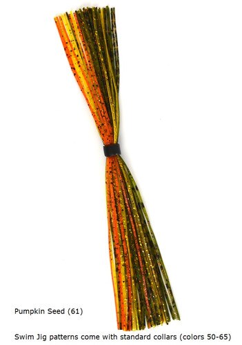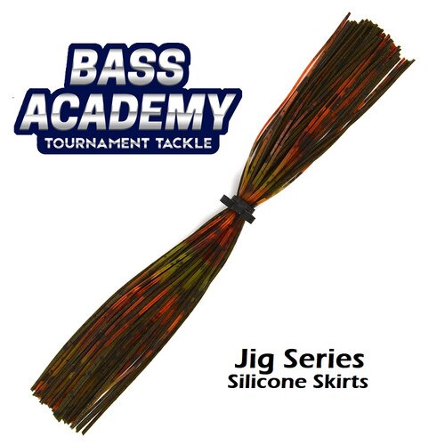 NEW & IMPROVED! Check out our new line of hot color patterns in the Bass Academy series. We've added 16 Jig Skirt patterns (colors 30-45) and 16 hot Swim Jig Skirt patterns (colors 50-65). Premium silicone material in all the best color combinations. The jig skirts feature collars that allow you to add rattles if desired. Swim Jig patterns come with standard collars. 5 skirts per pack.