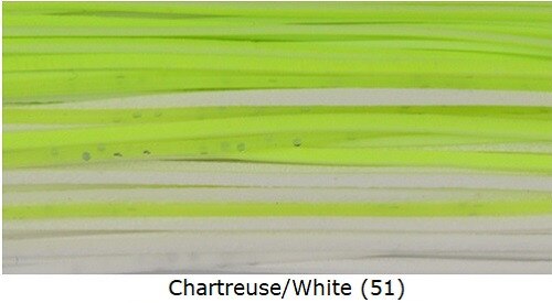 LurePartsOnline.com carries a wide range of silicone skirts. Silicone is an ideal material for fishing lure skirts as it is elastic, durable, and retains its color. Silicone will not “melt” in your tackle box (like the traditional rubber skirts did) and will not react to or bleed out when in contact with soft plastic lures. These skirts come assembled and ready to slide on your lure or jig. Some silicone material features round strands, but most silicone is cut from a sheet in flat, narrow strips.