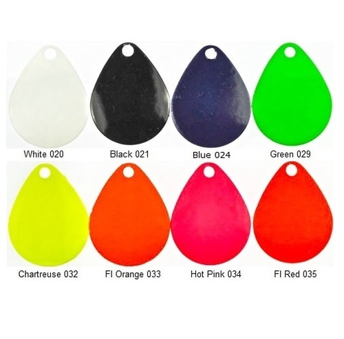 Ideal for spinner rigs, these Deep Cup Colorado Blades are painted with bright paint on both sizes and feature the deeper cup for added vibration and thump. These can be fished at slower retrieval speeds. Although very similar, these blades are not exactly the same size and shape as our Premium Finish spinner blades. These blades are a matte painted finish - they not clear coated. Shop Deep Cup Colorado Blades for sale in 8 different colors. SEE "Specifications" Tab for blade dimensions