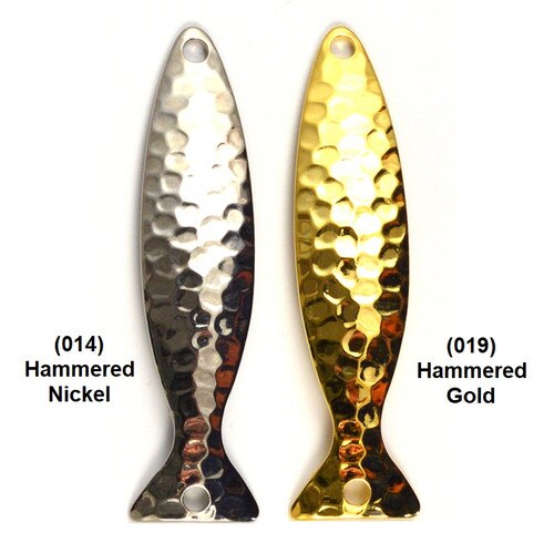 Our premium Jigging Spoons can be jigged, trolled or cast. Stamped from thick brass then plated, these spoons will outlast the traditional lead types. Just attach a hook with a split ring and you are ready to fish. Choice of hammered nickel or hammered gold finishes.